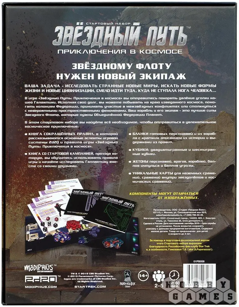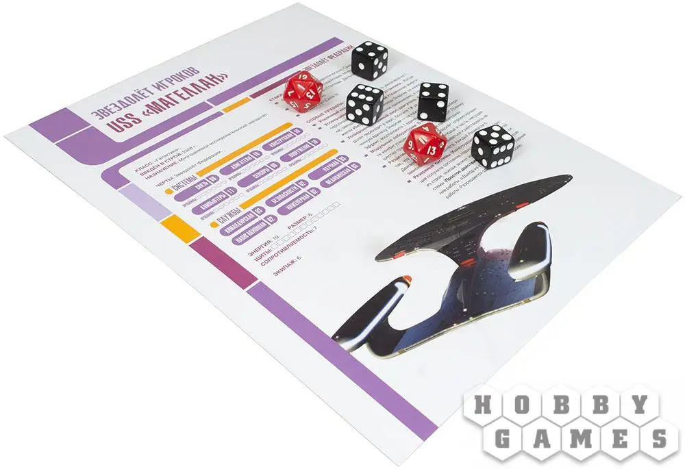 Чтобы исполнить свой долг, вам придётся помогать колонистам Федерации осваивать новые планеты, участвовать в ожесточённых боях с коварными ромулянами и свирепыми клингонами как на поверхности планет, так и в открытом космосе, а также изучать неизвестные науке пространственные аномалии. Вы и ваши друзья – лучшие кадры Звёздного Флота, ведущие современнейший корабль против врагов Объединённой Федерации Планет. В составе стартового набора вы получите всё необходимое, чтобы погрузиться во вселенную Звёздного Пути, в том числе 5 бланков персонажей со своими уникальными особенностями, сильными сторонами и убеждениями, которые будут непосредственно влиять на игровой процесс, бланк вашего космического корабля и готовое приключение. А в будущем, освоив игру, вы сможете написать собственные оригинальные сценарии для своих игр.